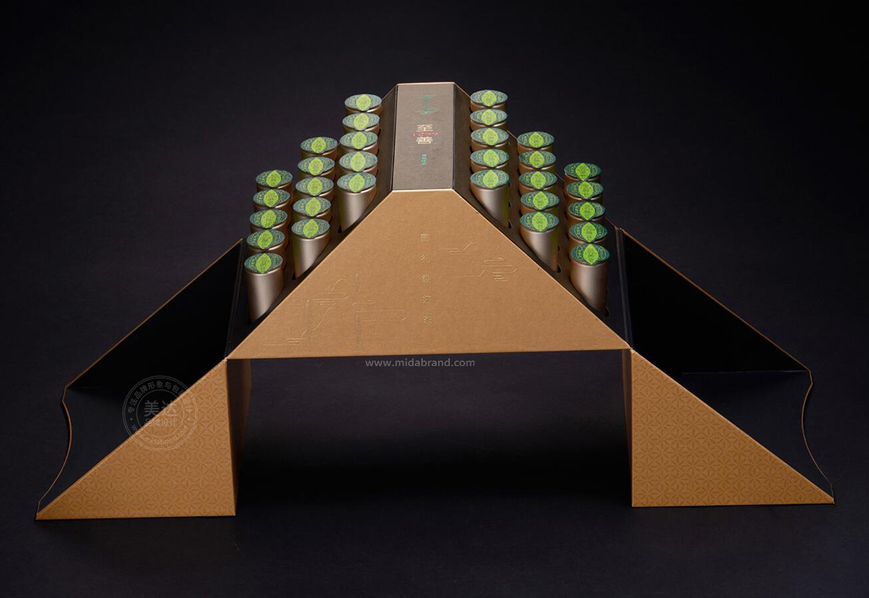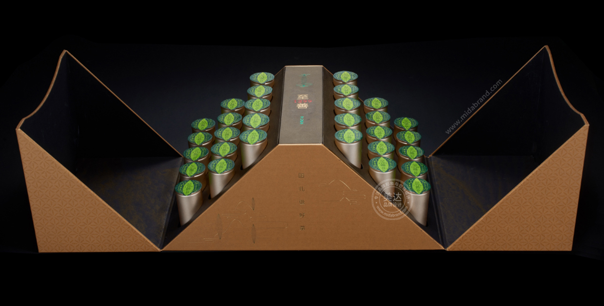 至善1299高山有機綠茶清明節前采摘于沐川縣李家山有機茶園。產量極為有限加上臻選獨芽作為原材料并經層層工藝精制而成,所以造就“至善1299高山有機綠茶”的稀有性。物以稀為貴,故該產品定位為高端商務饋贈茶禮。品牌方要求設計一款能體現高端,稀有的茶葉包裝,美達品牌為其提供解決方案:獨芽葉形在包裝盒面以鏤空形式表現,將產品形態轉化為包裝記憶符號。打開盒子一座“山型茶園”躍然呈現,此時包裝外型酷似漢字“山”,盒蓋繼續下翻作為底座支撐,整個包裝又變換為一座高山的形態,寓意高山綠茶海拔1299米的生長環境。一片片茶芽從半山延伸到山頂,既象征對茶葉品質的層層篩選,也寓意人生境界的不斷攀升,最后達到巔峰,“止于至善”!產品進入市場后得到全國各地用戶受眾好評,首批產品上市兩周便宣告售罄。