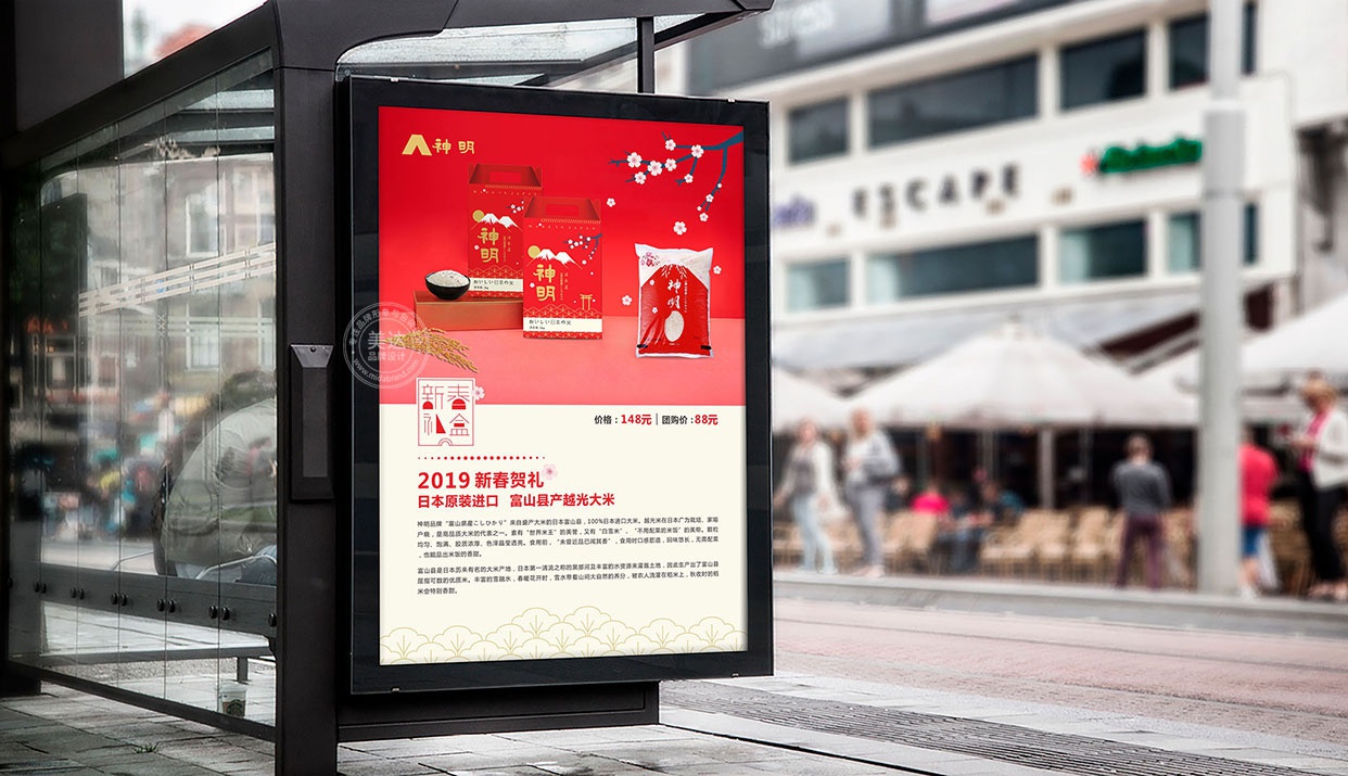 美達品牌設計于2019年初為神明大米設計的新春禮盒設計,成都各伊藤超市均有銷售,受到廣大消費者好評。