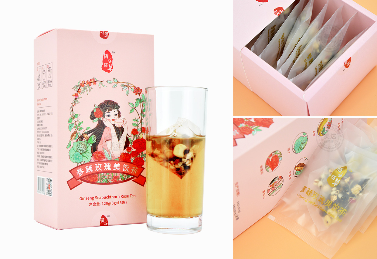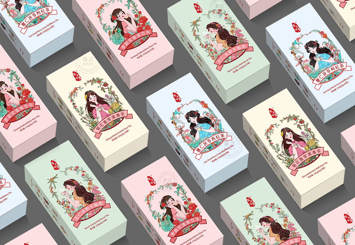 佰谷佰草花茶系列包裝設計(參棘玫瑰美飲茶、五仁決明子秘茶、薏仁茯苓枸杞茶、菊花麥芽清清茶)
